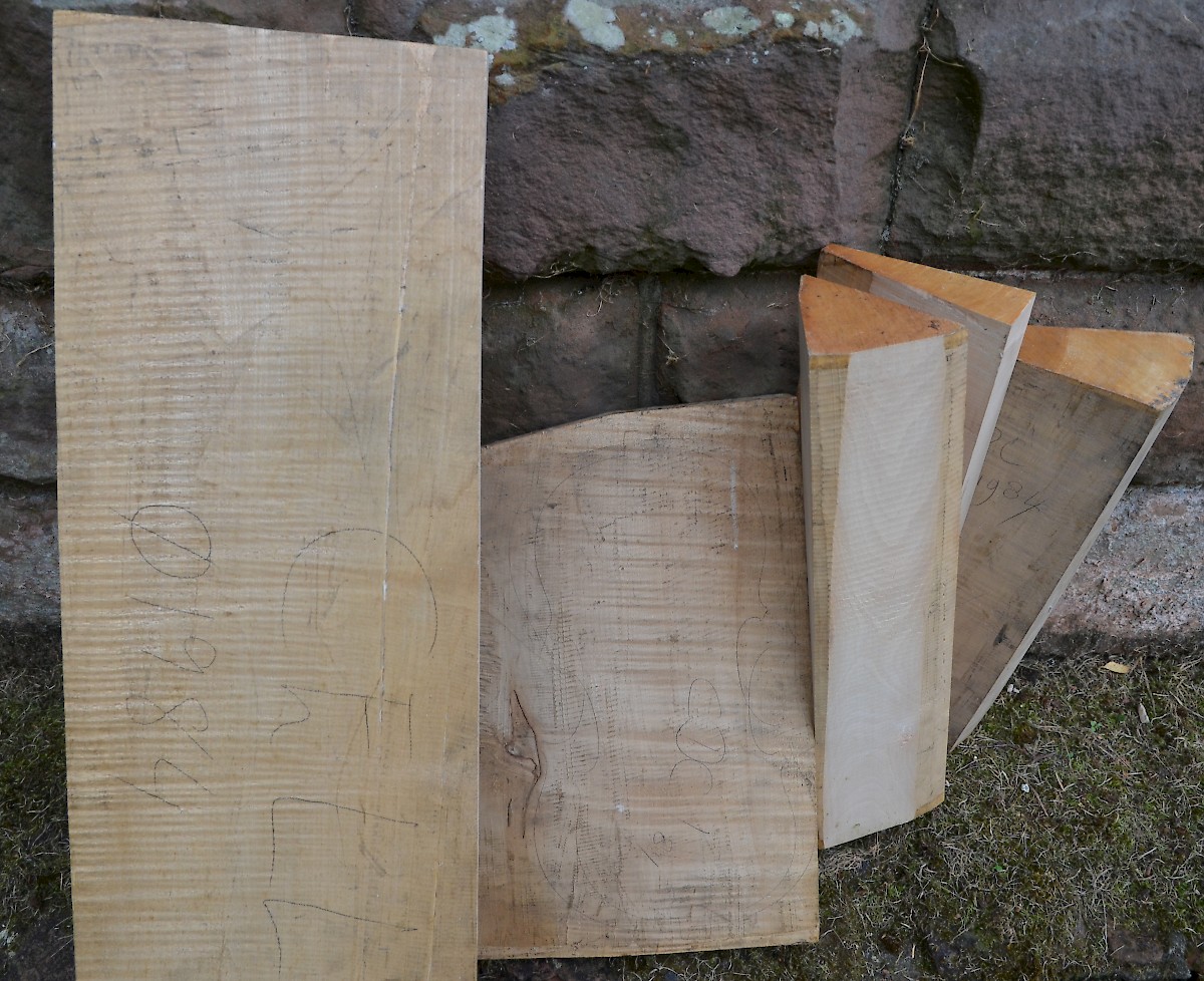Sycamore is not native to Britain, it is believed to have been introduced from Europe sometime in the Middle Ages, and to gardeners, it is almost as popular as Himalayan Balsam and Japanese knotweed. Other types of wood which are used for violin backs, necks and ribs are Beech, Poplar and Pear wood. Poplar is softer, Poplar and Pear are both less stable than Sycamore.