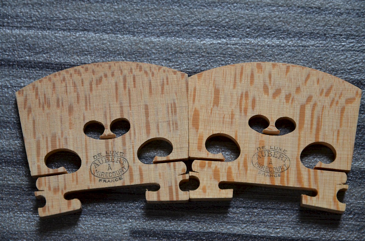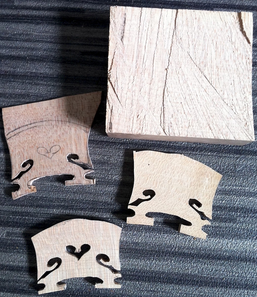 For bridges with a good sound transfer from string to instrument, I would choose Sycamore with very tight grain and prominent medullary rays.